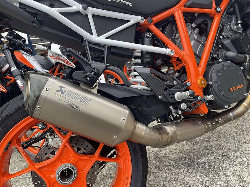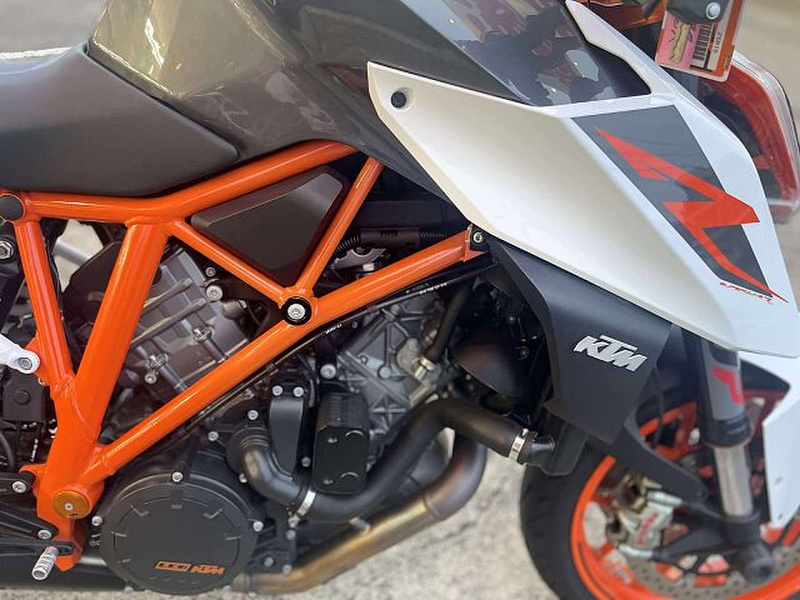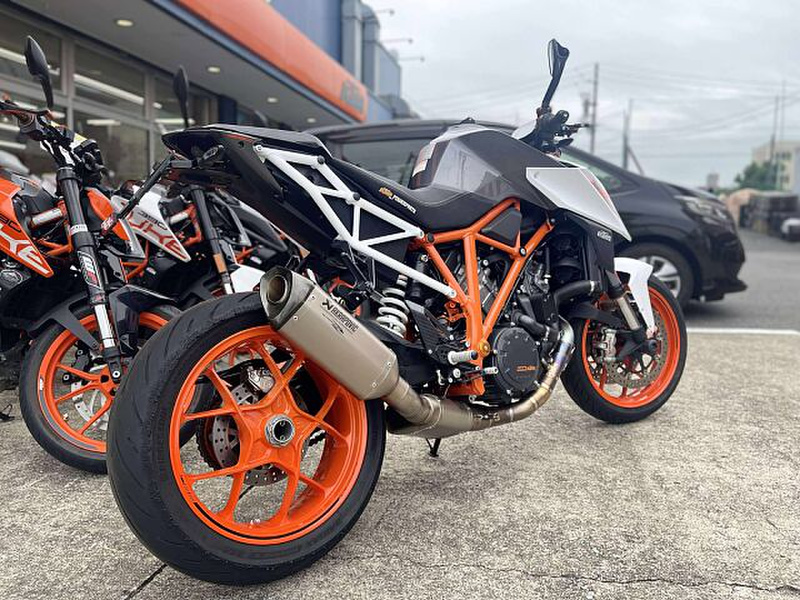高性能のVツインエンジンと優れたハンドリング性能により、刺激的な走りを実現。軽量な車体と最先端の電子制御システムも搭載し、安全性と快適性を両立しています。その高いパフォーマンスとダイナミックな乗り心!さすがKTMフラッグシップモデル!と納得がいくバイクです。装備も豪華!フルエキマフラーに変更し、エボテックパフォーマンスラジエーターガードも追加されました。