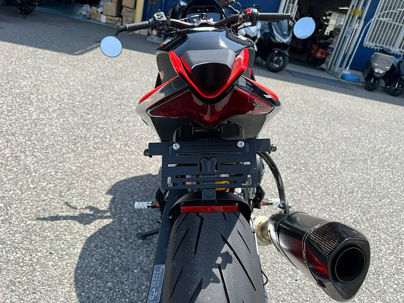アプリリアTUONO V4 1100 Factory 2022年式は、ハイパフォーマンスとスタイリッシュさを兼ね備えたスーパーネイキッドバイクです。アプリリア独自のV4エンジンは、驚異的な加速とスムーズな走りを実現し、最大1100ccのパワーを発揮します。アグレッシブなデザインと軽量なアルミフレームにより、俊敏なハンドリングと快適なライディングが可能。電子制御システムも充実しており、ライダーの安全性と操作性を高めています。ユーザーからは、「走りの楽しさとスタイルの良さが絶妙」と評判で、特に街乗り・ツーリングに最適と支持されています。高性能と高級感を求めるライダーにぴったりの一台です。