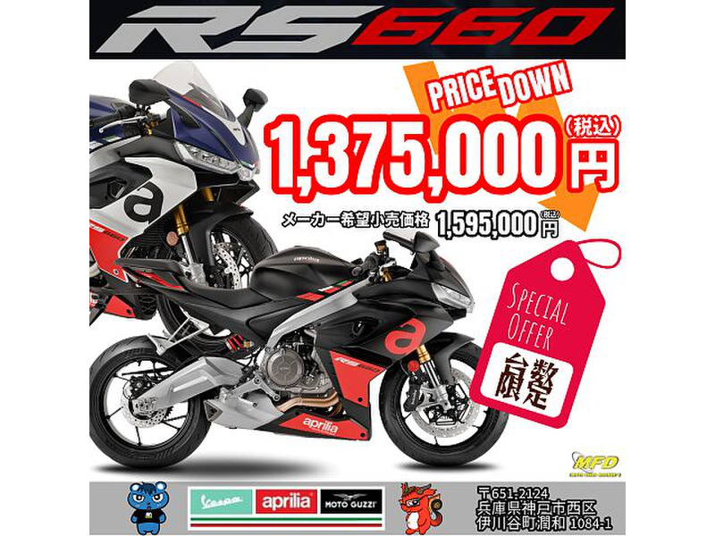 アプリリアRS660 2023年式【RACING BLACK】は、軽量かつ高性能なミドルクラススポーツバイクです。優れたハンドリングとパワフルなエンジンにより、サーキットから街乗りまで多彩なシーンに対応。特にブラックのカラーリングがスポーティさを引き立て、洗練されたデザインも魅力です。世界中のライダーから高評価を受けており、シャープなコーナリング性能と快適な乗り心地が好評です。初心者から上級者まで満足できる一台として、多くのファンに愛されています。最新技術を駆使し、走行性能と安全性も向上しています。レース仕様の性能を持ちながら、スタイリッシュな外観と高いコストパフォーマンスを兼ね備えたRS660は、次世代のバイクライフを約束します。