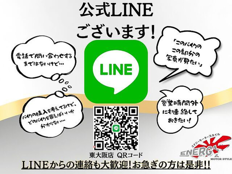 バッテリー・プラグ・エンジンオイルは新品交換致します!!納車後も1年もしくは10000kmまでしっかりと保証させて頂きます!!更に延長保証始めました!最大2年20,000km保証致します。詳しくはスタッフまでお気軽にお問い合わせ下さい。任意保険・車体保険・盗難保険の取り扱いもしております!!!追加カスタムも承っております!!納車後の点検も、無料で対応可能!!乗り出し後、不慮の事故やトラブルに見舞われても、当社任意保険のロードアシストでレッカー費用も無料です!!買ってからのアフターフォローを重要視した販売店です!!