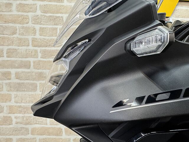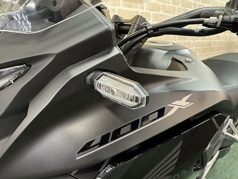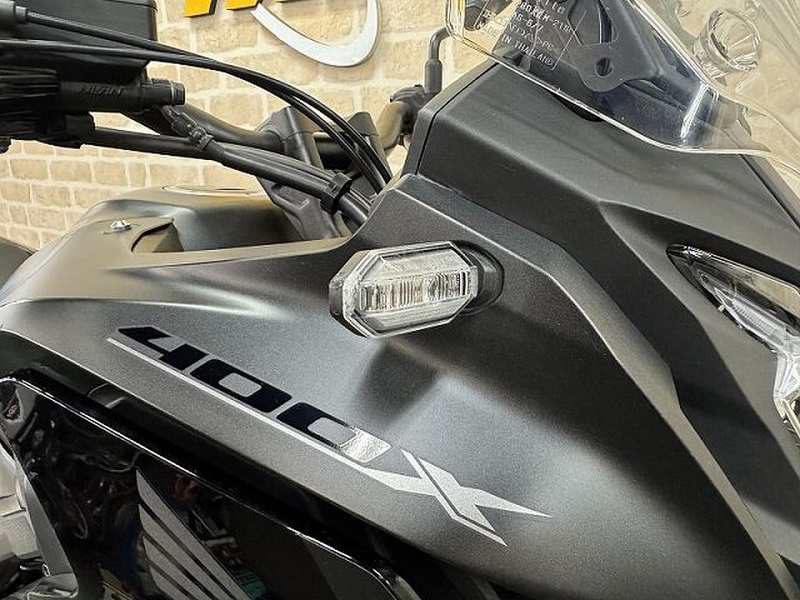 ★400X★マットバリスティックブラックメタリック★新規車両入荷しました!水冷・4ストローク・DOHC・直列2気筒・399ccエンジンを搭載したクロスオーバーモデル「400X」上質な運動性能を獲得するため、路面追従性に優れ、上質な乗り心地を提供するSHOWA製SFF-BPを採用した。また、フロントブレーキをダブルディスクとすることで、制動時の安心感をより高めた。さらに、スイングアームの剛性最適化やフロントホイールの軽量化を図るなど、前後の分担荷重を最適化し、前輪の接地感と旋回性に寄与している。