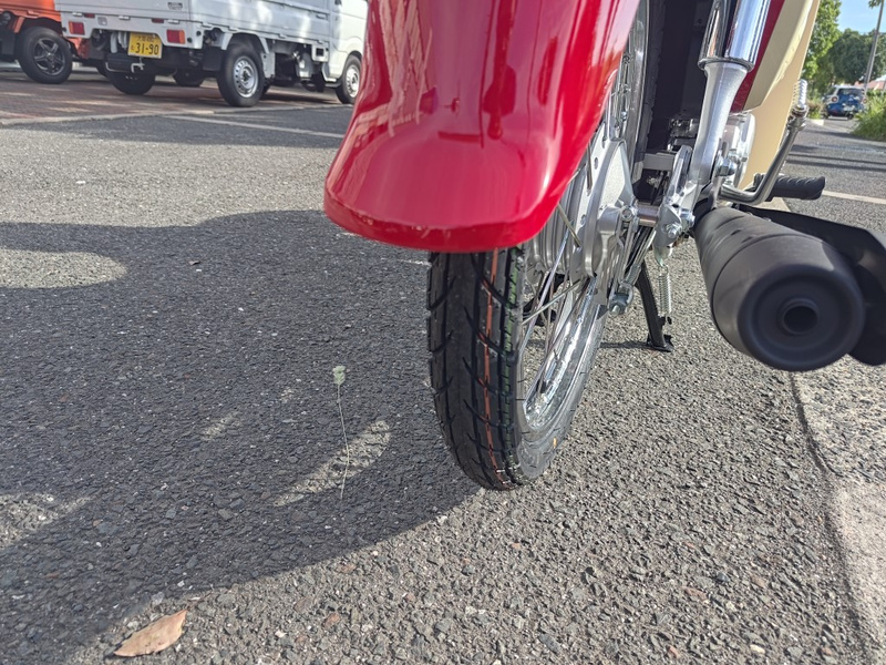 バイクとしての性能も、もちろん折り紙付きです。スーパーカブならではの扱いやすさと燃費の良さは、通勤やちょっとしたお買い物、街乗りにもぴったり。さらに、メーカー保証が2年間付いているので、安心して乗り始めることができます。