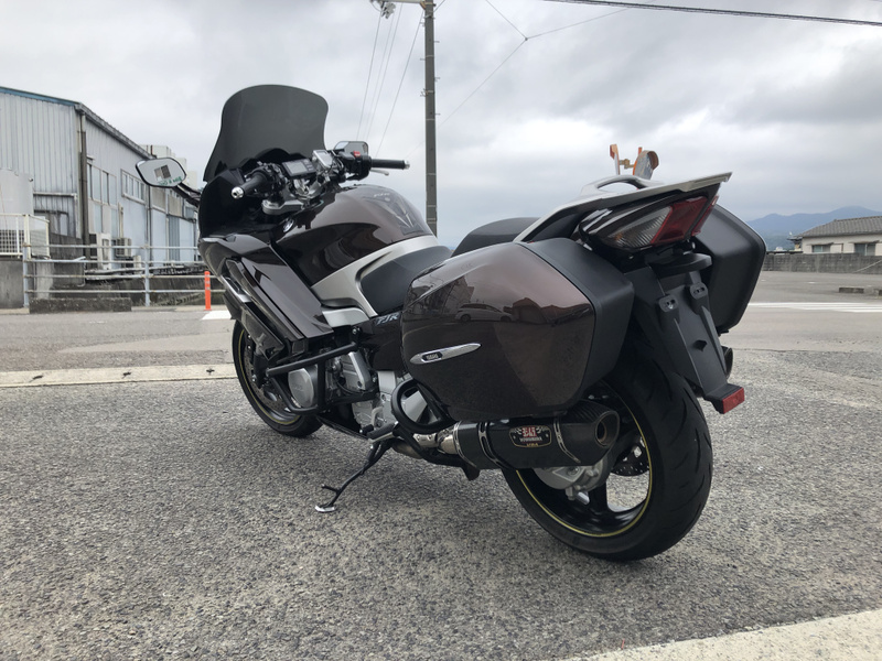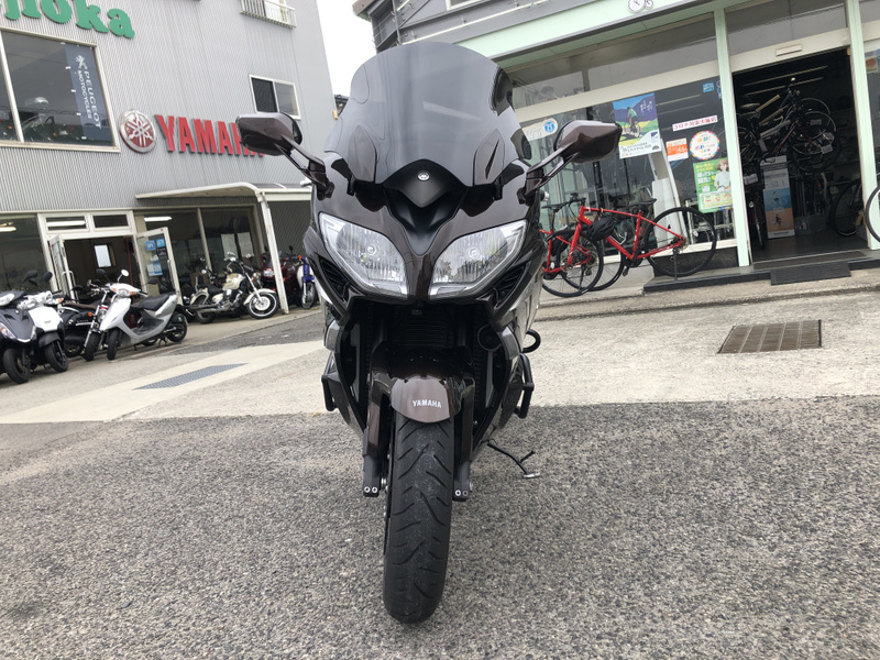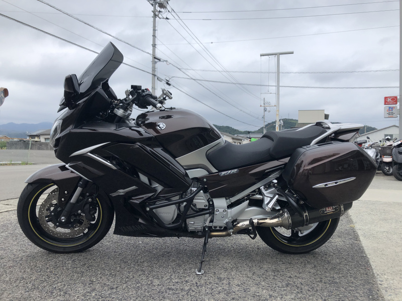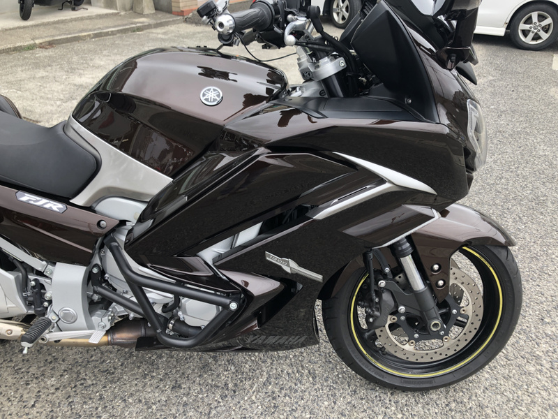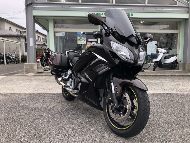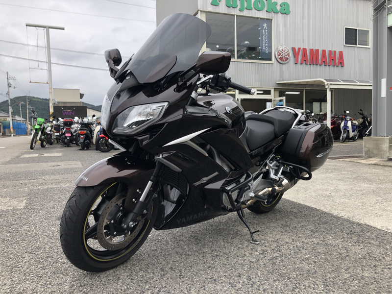 ヤマハ、FJR1300AS、2015年式、走行17,197km、カラーはベリーダークオレンジメタリック1で落ち着いたブラウンメタリックです。クラッチ操作が不要なYCC-S(ヤマハ電子制御シフト)と電動調整サスペンションなどを採用した上級モデルです。