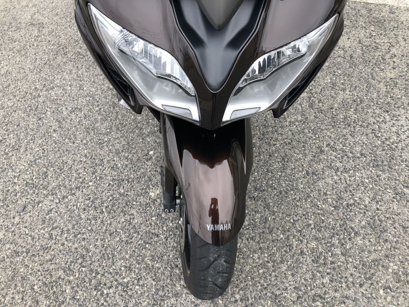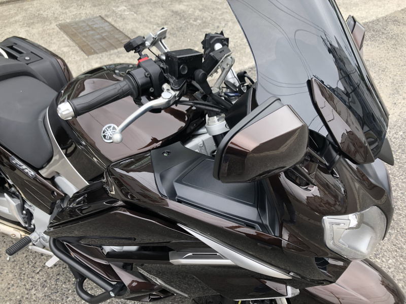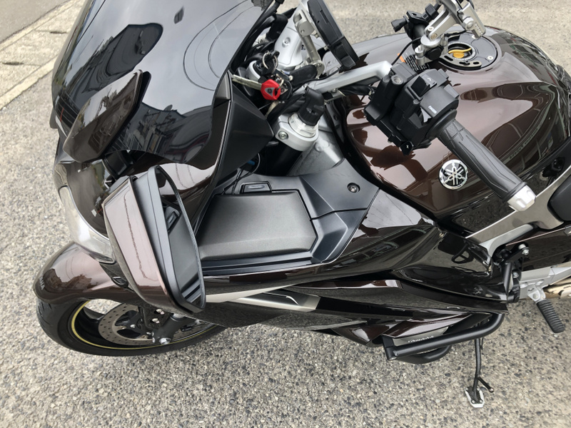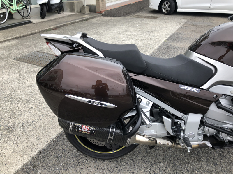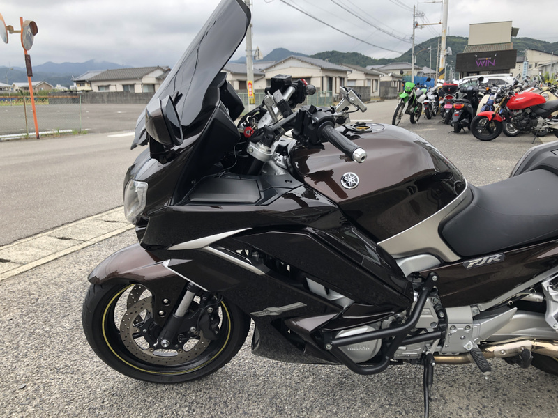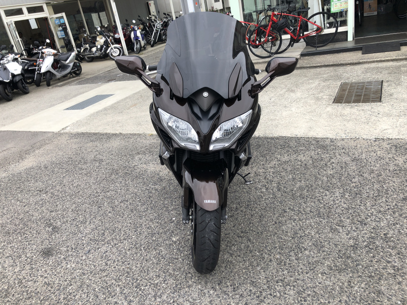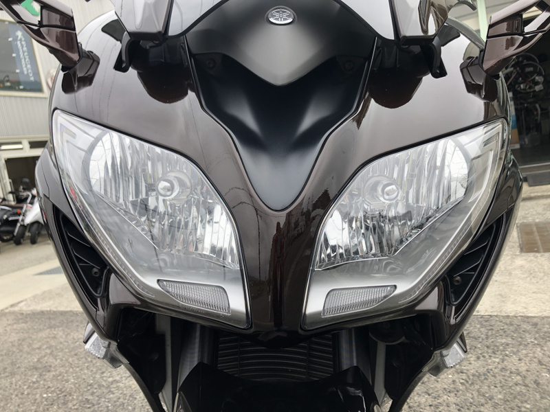 ヤマハ、FJR1300AS、2015年式、走行17,197km、カラーはベリーダークオレンジメタリック1で落ち着いたブラウンメタリックです。クラッチ操作が不要なYCC-S(ヤマハ電子制御シフト)と電動調整サスペンションなどを採用した上級モデルです。