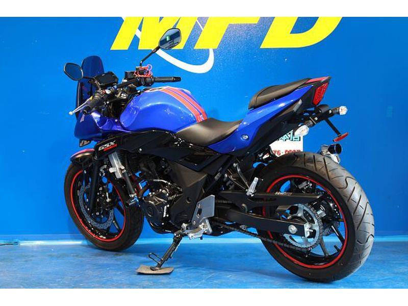 GSX250RをベースにMFDオリジナルのカタナ外装KITを装着し、オリジナルカラーでペイントしたカスタム車両。EVATEKマフラー&スライダー、アクセサリーバー付き!!◆MFD東京店はどんなお店